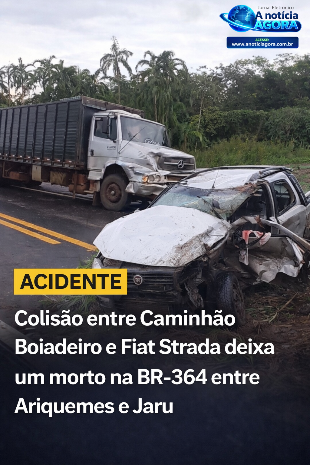 Colisão entre Caminhão Boiadeiro e Fiat Strada deixa um morto na BR-364 entre Ariquemes e Jaru