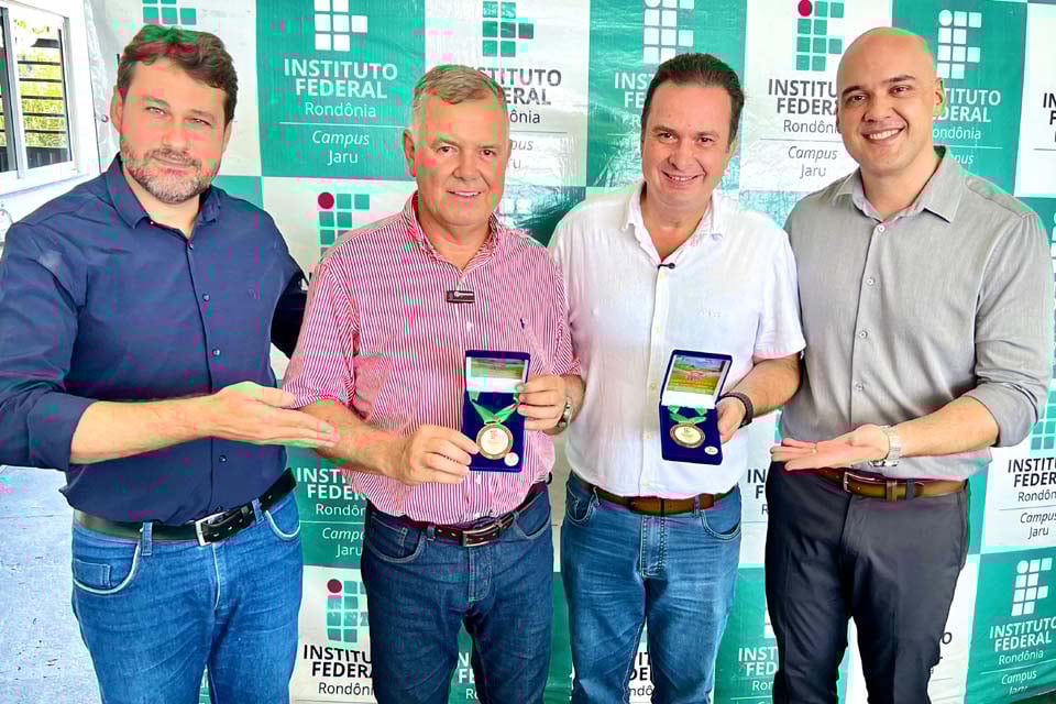 Durante a cerimônia, o deputado Mosquini recebeu a Medalha de Reconhecimento do IFRO, sendo o primeiro homenageado em Jaru com essa comenda pelos relevantes serviços prestados à instituição.