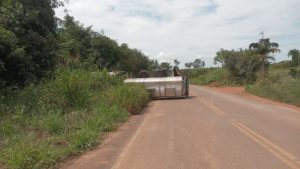 Caminhão de transporte de leite tomba na RO-133 em Vale do Anari