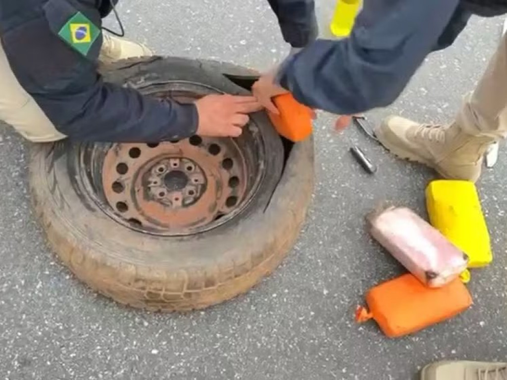 No interior do veículo, foram encontrados compartimentos ocultos na lateral do porta-malas, encoberto por forros, e dentro do estepe. Dentro deles, estavam diversos tabletes de pasta base de cocaína.