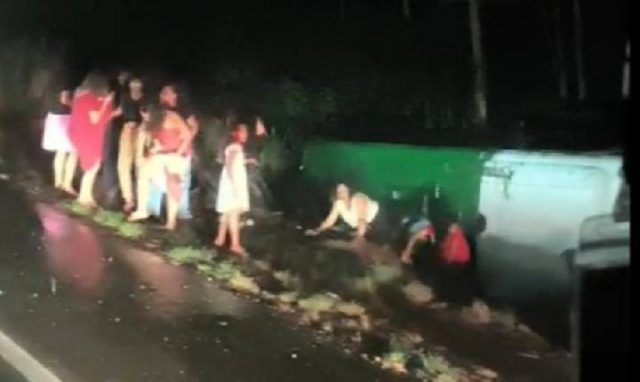 Com o impacto, o micro-ônibus saiu da pista e capotou em um barranco às margens da rodovia. A PRF informou que 28 pessoas sofreram ferimentos leves.