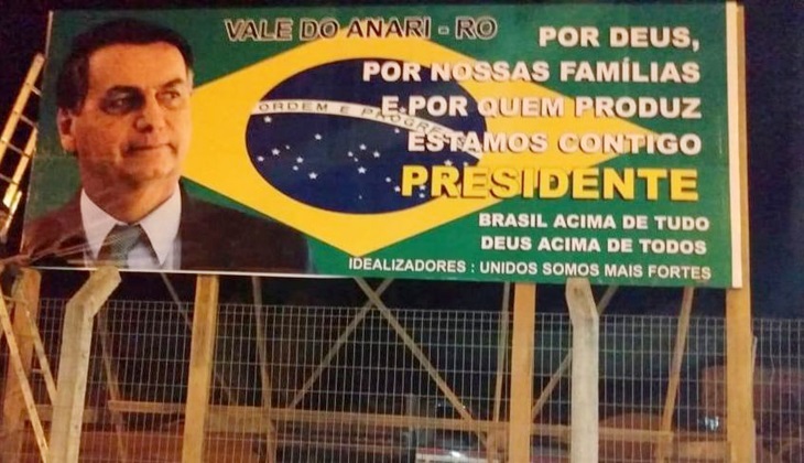 Nesta quarta-feira, 29, foi instalada uma placa (outdoor) com mensagens de apoio ao presidente Jair Bolsonaro em Vale do Anari-RO.