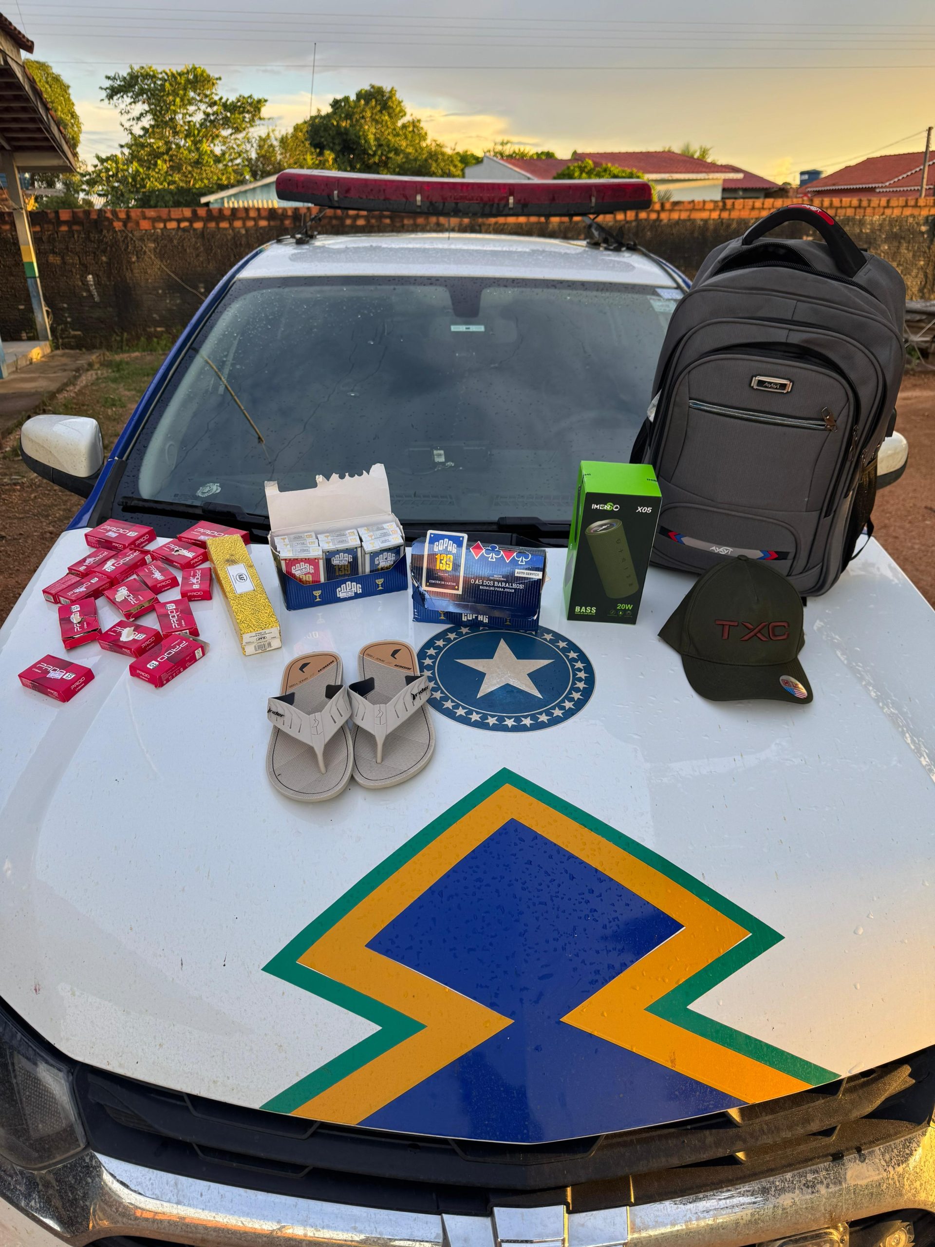De acordo com as informações registradas, O suspeito foi abordado pela Polícia Militar e teria tentado disfarçar a aparência com roupas diferentes. Com ele foi localizado dinheiro em espécie e em uma mochila estava diversos objetos furtados de estabelecimentos comerciais.