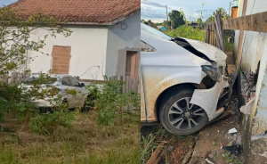 VALE DO ANARI: Condutor perde controle de veículo prisma, colide em residência e fica ferido