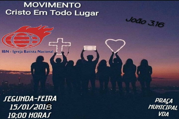 A Igreja Batista Nacional Ei-Shaday de Vale do Anari realizará nesta Segunda-feira (15) ás 19:00 horas, o movimento ” Cristo em Todo lugar” na praça municipal.